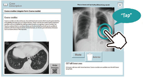 - X線画像上で、聴きたい部位をタップするとグループ学修用スピーカで音を出せます。