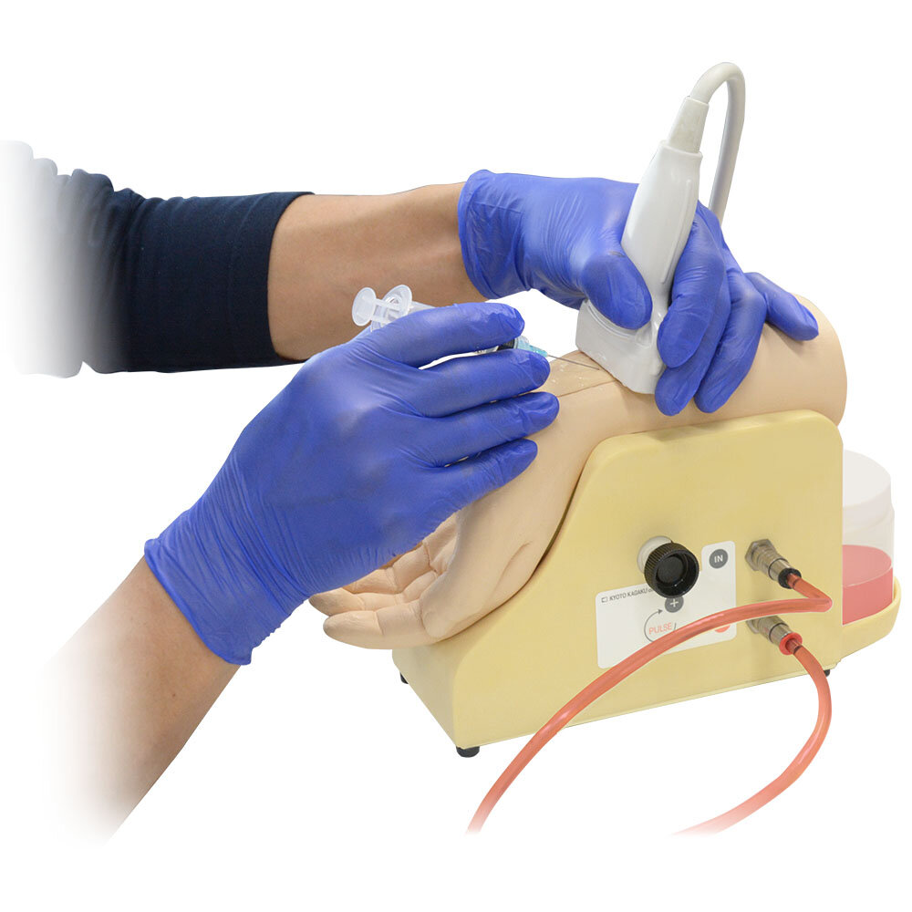 | Features | - Palpable pulsation of arterial pulse - Realistic needle resistance against tissue and artery wall - Natural counter-flow - Radial arterial line placement can be simulated - No puncture trace remains on the injection site - Leak-free connections |